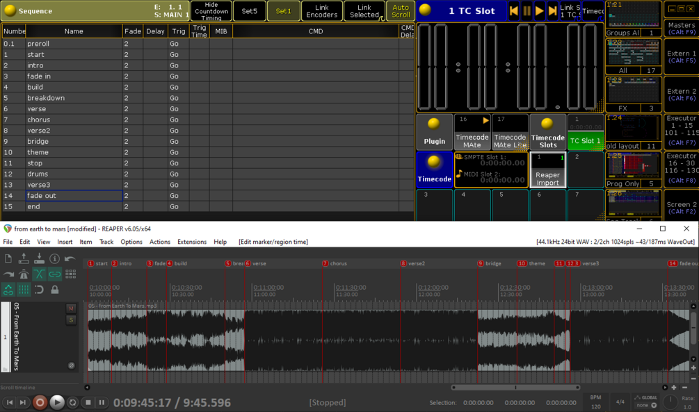 In the Lite version you can import Reaper markers to MA by a .csv markers file, and only one timecode track (one executor) is supported. Also, supported timecode event commands are only “Go” and “Goto”.